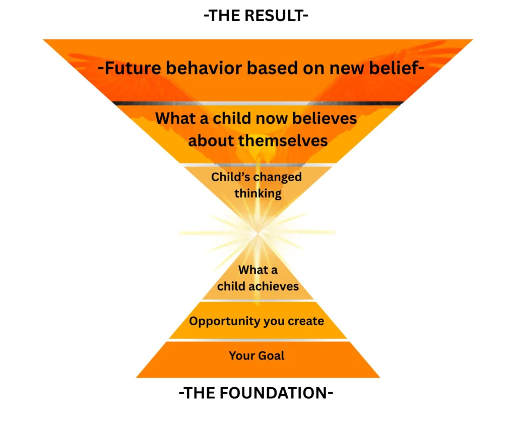 Are you a child’s biggest confidence killer? You don’t have to be. Yet it often happens despite our best intentions. But, there IS a solution. By simply keeping focused on The ONE thing that drives all other results, we can give a child the foundation he or she needs for a happy, confident and purpose-filled life with the strength to withstand the most difficult social and emotional challenges. Achieving success and abundance in life starts with our opinion of ourselves and what we believe is possible. Nurturing self-confidence and a positive self-image in young children is the goal of The Flying Eagle Formula, a different and easier approach to raising, teaching and coaching children. How? By understanding how to help them develop a success mindset.